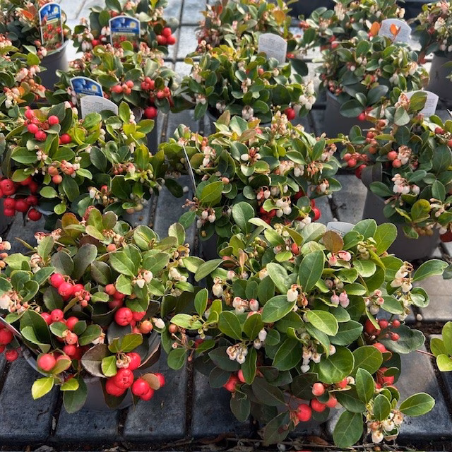 Gaultheria procumbens (Bergthee) is een compacte, wintergroene plant die opvalt met zijn glanzende blaadjes en felrode bessen in de winter. In de herfst kleuren de bladeren prachtig roodpaars, waardoor de plant maandenlang interessant blijft. Vanwege de lage, kruipende groei is Bergthee ideaal als bodembedekker en perfect te combineren met bijvoorbeeld heide of varens. Een sfeervolle toevoeging voor tuinliefhebbers die houden van subtiele details en seizoensbeleving.