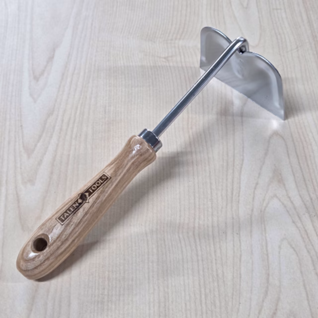 Dit compacte handhakje van Talen Tools gebruik je in (moes)tuinen van een compact formaat. In tegenstelling tot een hak met lange steel, bespaar je met dit handhakje ruimte en werk je bovendien ook nog preciezer. Om het handhakje prettig in de hand te laten liggen en de vorming van blaren te voorkomen, is het hout gewaxt. Deze wax geeft meer comfort, maar beschermt ook het hout tegen de aantasting door vuil en vocht. Hetzelfde geldt voor het staal. Door gebruik te maken van verzinkt staal is er een extra laagje bescherming aangebracht om de kans op roes te verkleinen. Berg na gebruik het handhakje weer veilig op door gebruik te maken van het ophanggat. Wanneer je het handhakje aan een gereedschapshaak hangt, verklein je de kans op slijtage door schuring met ander materiaal.