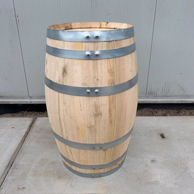 Kastanje houten Portvat 110 liter, dit zijn nieuwe wijnvaten gemaakt om te gebruiken als regenton of decoratie, van dik hout gemaakt en zeer duurzaam.
