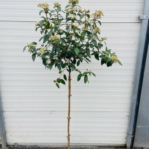 Lang bloeiend en groenblijvend in de winter zijn belangrijke eigenschappen van de Viburnum, ze zijn ook op stam leverbaar.