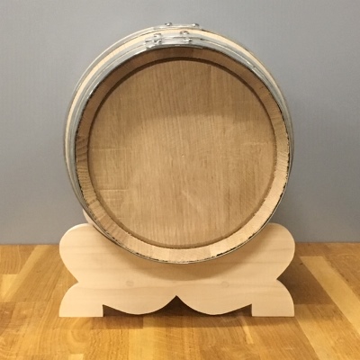 Wijnvat 10 liter van nieuw eiken met stop en onderstel, ook wel whiskyvat van 10 liter genoemd, voor het schenken van wijn of het rijpen van Whisky of likeur